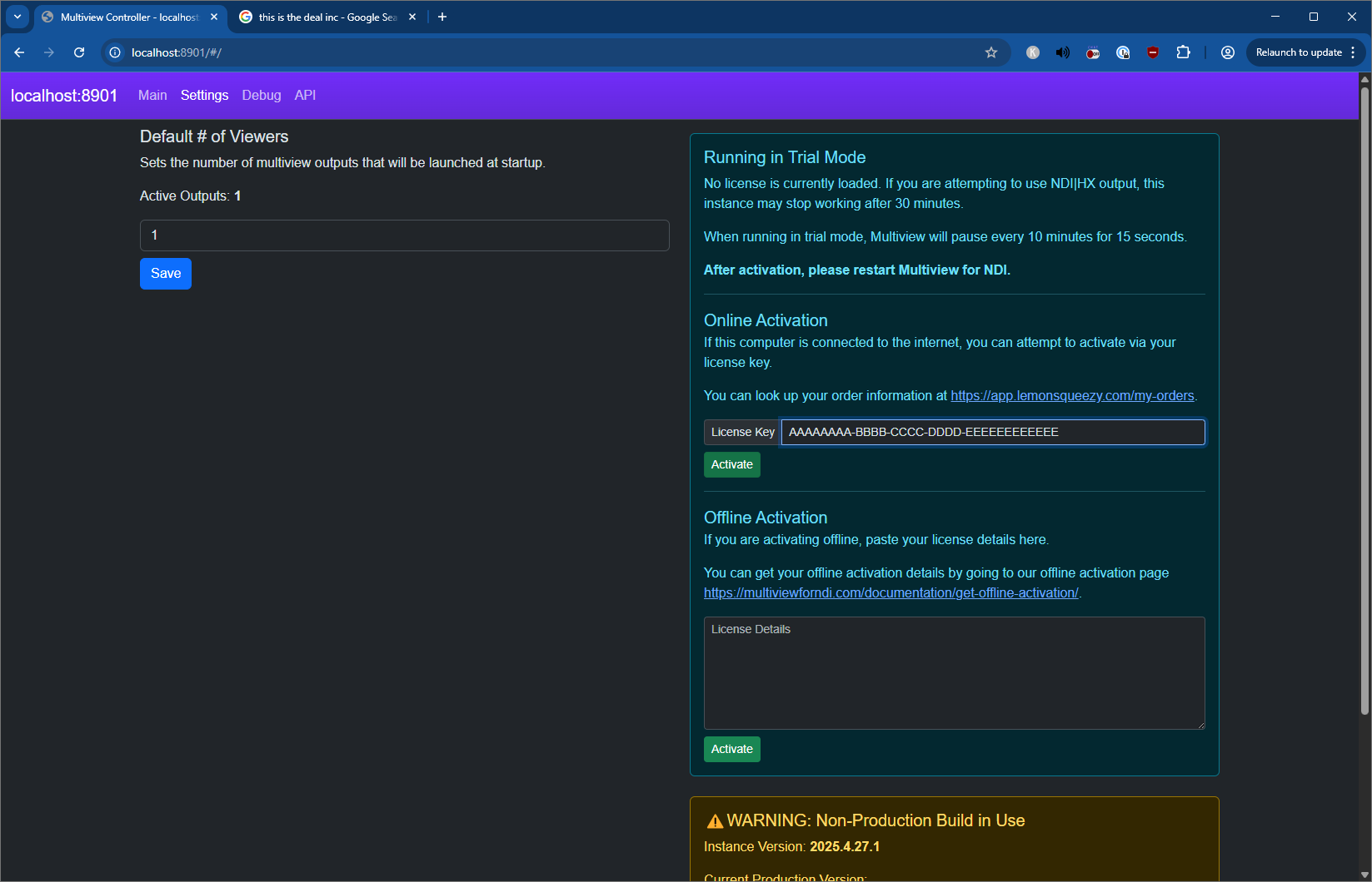 Without a license key installed, Multiview for NDI operates in trial mode. In trial mode, the following limitations are in place.