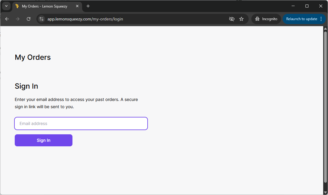 1. Go to <https://app.lemonsqueezy.com/my-orders/login>